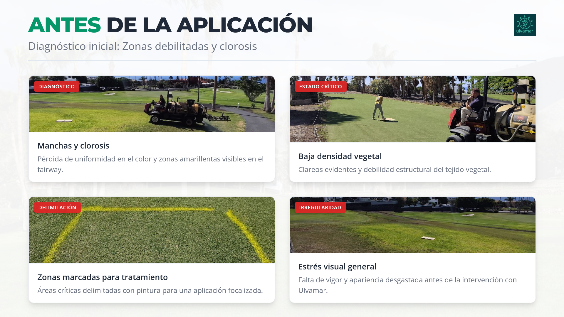 En esta sección de la web se muestran imágenes reales de ULVAMAR aplicado en distintos campos de golf, donde se puede observar: