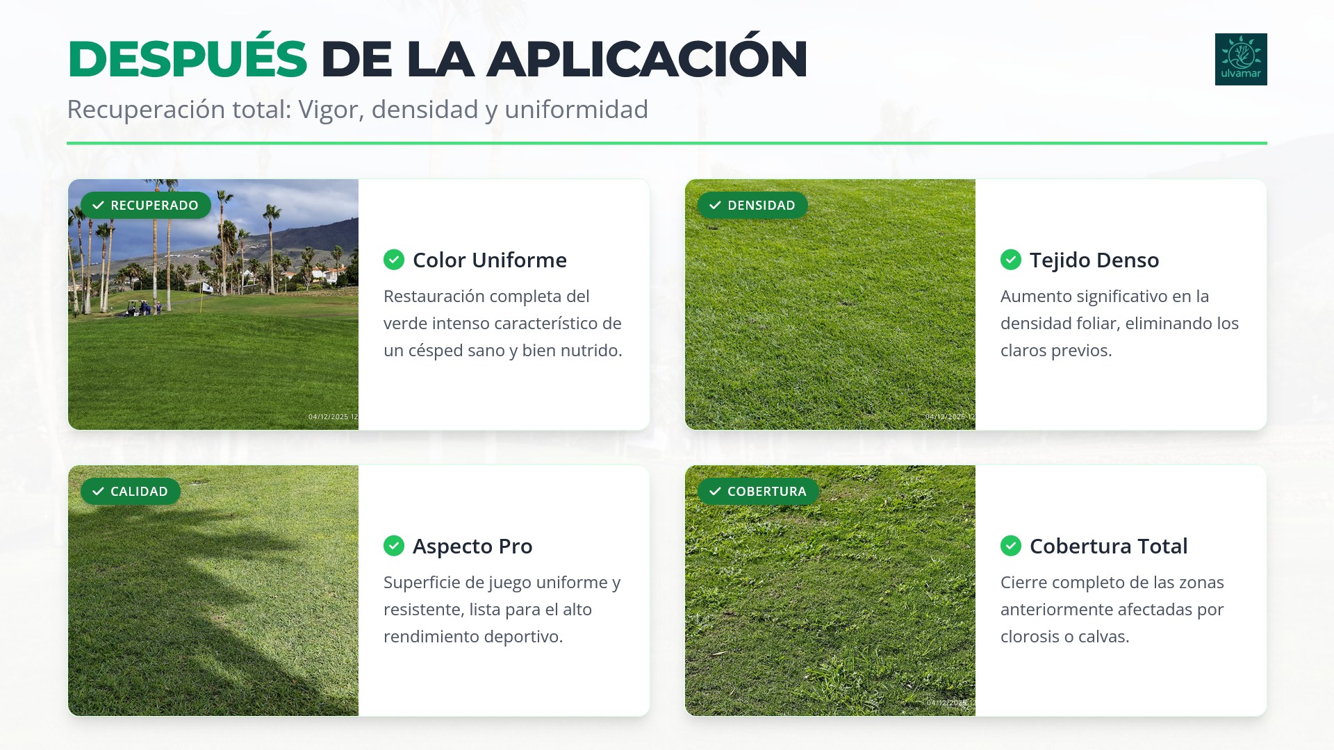 ULVAMAR no es solo un producto, es una herramienta de alto rendimiento diseñada para superintendentes, greenkeepers y gestores de campos que buscan resultados visibles y sostenibles.